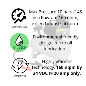 VGDPRO 24V DC Oil Less Weatherproof High Efficiency Onboard Air Compressor