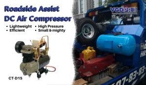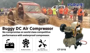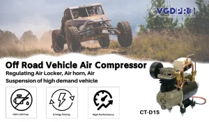 The VGDPRO CT-D1S-DC12V is a high-efficiency, weatherproof, and oil-less DC mini portable professional air compressor. Designed for maximum performance, this compressor is built for long-duty cycles, making it ideal for a variety of on-site and in-situ engineering applications. Whether you need reliable power for air horns, air brakes, air directional lockers, air suspension systems, roadside assistance, fire engines, or pneumatic controls on buses and trucks, the VGDPRO CT-D1S-DC12V delivers. It is also perfect for pantograph boosting and many other critical uses.