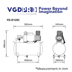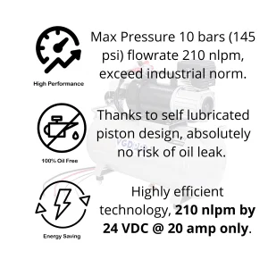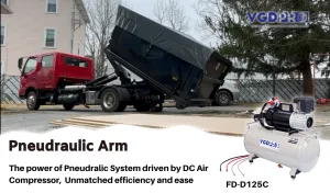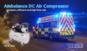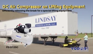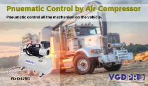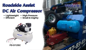 The VGDPRO FD-D125C-DC24V is a high-efficiency, weatherproof onboard DC air compressor designed for optimal performance. Featuring advanced oil-free technology, it delivers a high flow rate with low power consumption. Its 25-liter storage tank supports long-duty cycles and minimal maintenance. Ideal for on-site maintenance, air horns, air brakes, air lockers, air suspension, roadside assistance, fire engines, and pneumatic controls for buses and trucks, as well as pantograph boosting, this onboard compressor is the perfect blend of reliability and versatility for professional use.