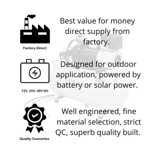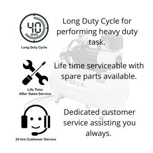 Be the first to review “VGDPRO 24V DC Oil Free Weatherproof Air Compressor with 25 Liter Tank Onboard Series”