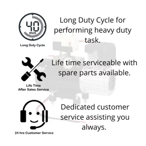 Our compressor is designed with advanced oil-free technology, eliminating the need for oil as a lubricant. Instead, it utilizes a self-lubricating piston ring that provides superior performance and allows the compressor to achieve higher pressures than traditional piston compressors. This design not only enhances efficiency but also removes the risk of oil spillage and the hassle of constantly reloading oil. Users can enjoy uninterrupted operation without the worry of compressor jams due to oil maintenance issues, making our oil-free compressor a convenient and reliable choice.